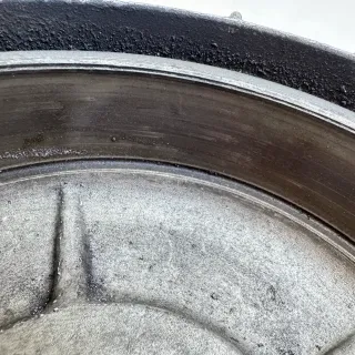 Vespa PX Lusso Bremstrommel mit 31,5mm Wellendichtringsitz. Version für den Staubring mit innenliegendem Wellendichtring. Verzahnung und Lauffläche gut, aber Lack schlecht und die Stehbolzen sollten auch erneuert werden.Fahrzeug